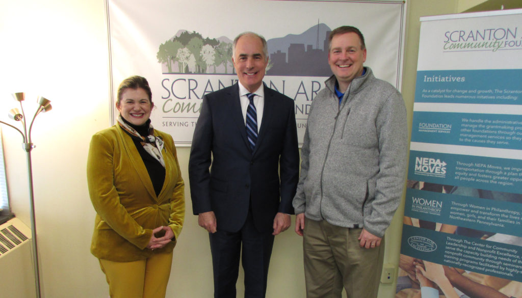 Pictured from left to right: Laura Ducceschi, Scranton Area Community Foundation President and CEO; Robert. P. Casey, Jr., United States Senator for Pennsylvania; and Kenneth Okrepkie, Scranton Area Community Foundation Board Chair.
