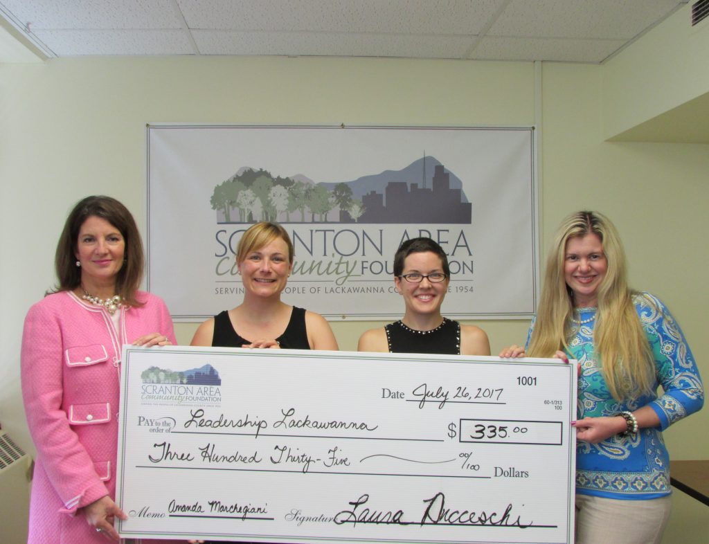 Pictured from left: Leslie Collins, Executive Director of Scranton Tomorrow; Nicole Morristell, Director, Leadership Lackawanna; Amanda Marchegiani, 2017 Government Leadership Award Recipient; Laura Ducceschi, President & CEO of Scranton Area Community Foundation
