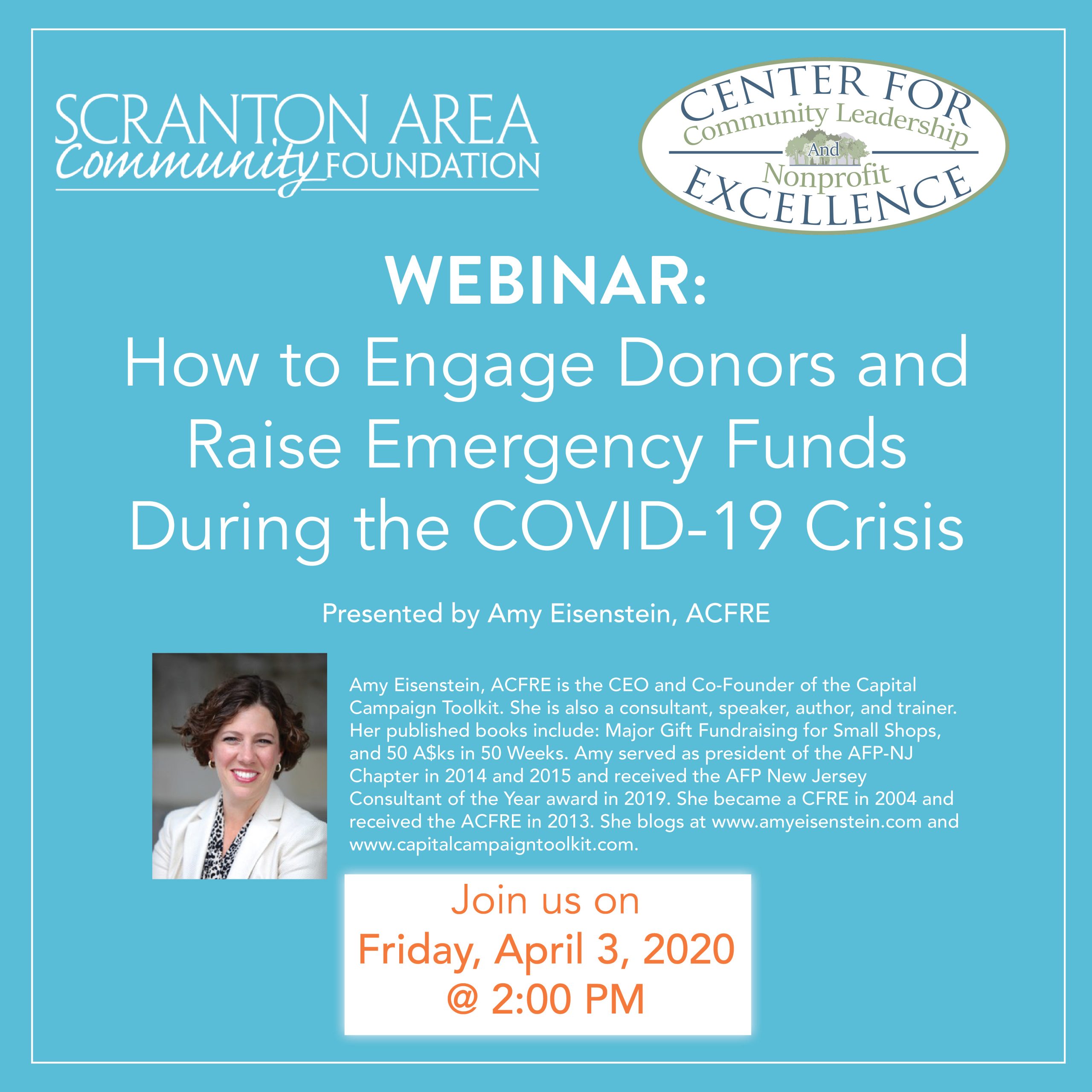 Webinar: Fundraising through the COVID-19 Crisis At the Scranton Area Community Foundation, we are committed to supporting the capacity of nonprofit organizations as you work to fulfill your critical missions. We know that the COVID-19 crisis is creating unprecedented disruptions and uncertainty among nonprofits and funders alike, but now is not the time to pause your fundraising efforts. Join us...