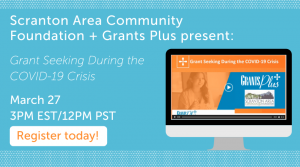Scranton Area Community Foundation will host a webinar with the grant-seeking experts at Grants Plus to outline the actions that grant seekers must take to address the strain of the immediate crisis while protecting and even expanding long-term funding gains.